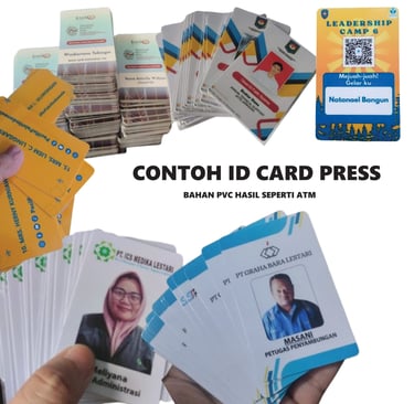 menawarkan berbagai produk cetak kartu PVC berkualitas tinggi, seperti ID card, kartu member, kartu akses, dan kartu pelajar. Setiap produk didesain dengan cermat untuk memenuhi kebutuhan spesifik pelanggan, menggunakan bahan tahan lama, dan teknik cetak modern.
